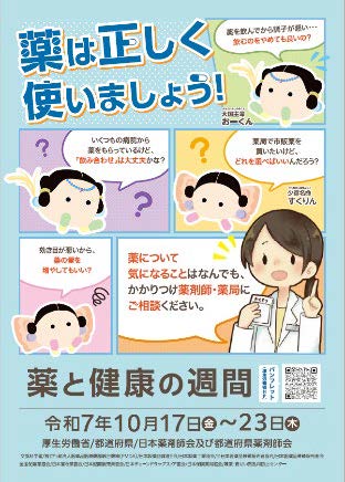 当社グループは、2025年10月17日~10月23日の期間において、厚生労働省、都道府県、日本薬剤師会及び都道府県薬剤師会が主催する「薬と健康の週間」の啓発活動に協力いたします。