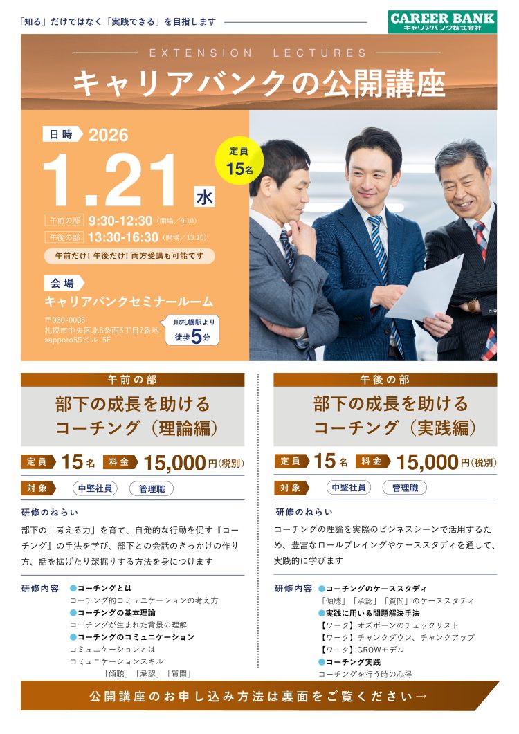 キャリアバンク公開講座『部下の成長を助けるコーチング(理論編)』