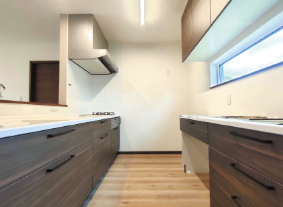 浄水器内蔵シャワー混合水栓のキッチン、FRPエコベンチ浴槽やスイッチ付エコアクアシャワーがついたバスルーム、アクアセラミック・フチレス便器のシャワートイレ、録画機能付カラーテレビドアホンなどの機能も充実している。価格は2198万円。