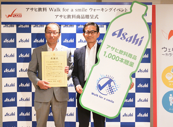 同社では、2021年から「Walk for a smile」と銘打ち、全国各地でウォーキングイベントを開催している。同企画では、社員の歩数に応じて(1万歩につき1本)、自社の飲料商品を地域のスポーツイベントや教育施設などに寄付しており、昨年は約15億8千万歩で15万8千本。21年からの累計では、約62億歩で62万本の飲料商品を寄付している。