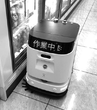 また、店舗の床掃除や窓ガラス拭きをロボットが行っている。