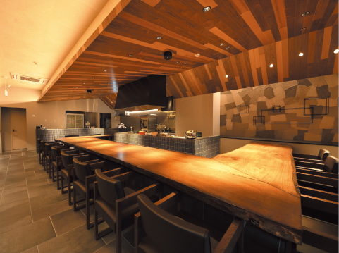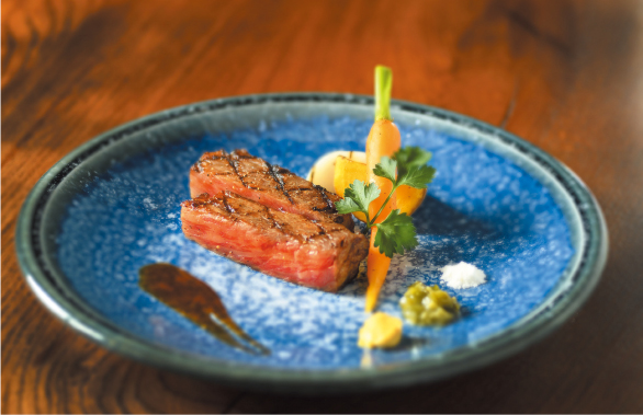 使用する食材は市場にほとんど出回らない黒毛和牛「えぞ但馬牛」をはじめ、知床どり、樽前ジャガ豚、旬の魚介などを焼き上げる。炎が踊り、脂が弾ける音が響き、立ち上る香りまでもが料理の一部となる。