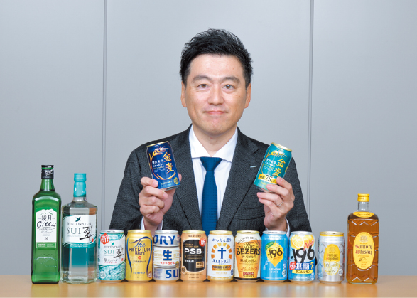 「糖質オフなどの機能系飲料やRTD(ふたを開けてすぐに飲めるアルコール飲料)商品、ノンアルコール飲料の伸長が著しいですね。休肝日を設けたり一日の本数を決めたりといった健康志向の高まりをはじめ、若年層の飲酒スタイルの多様化などの需要でご愛飲いただいていると感じています」と中谷智樹サントリー北海道営業本部長。