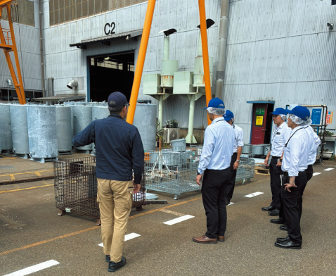 25年度は初の研修旅行を開催。製造メーカーの工場見学で九州を訪れた。各部署から参加者を募ったことで親睦も深まり、25年の社内テーマである「連携」を進めることもできた。