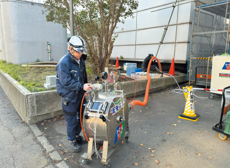 中田英一社長は「配管内部をクリーニングした後、FRPを張り付け(ライニング)して樹脂パイプを成形する工法です。既存の配管を取り替えることなく内側から補強できます。きれいになるだけでなく、さびや穴あきの補修も可能です。いわば管の〝再生〟です」と語る。