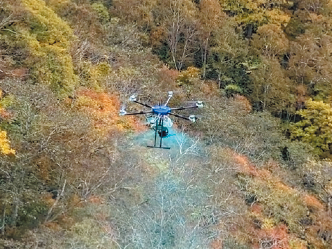 下野高社長は「当社はドローンによる散布を採用しています。これにより自然へのダメージをゼロにして、人の立ち入りが難しい急斜面などでも施工することができます。雄大な自然を生物資材で回復させる循環型の〝森林再生社会〟を創造していきたい」と語る。