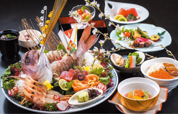 会席は季節ごとに献立が変わり、道産の旬を感じさせる品々がそろう。接待・会食に最適な「料理長お任せ会席」(1万1000円・税込み)、華やかなお祝いの席を演出する「お祝い会席」(1万1000円・税込み)など、いずれも料理長の技巧が光るコースばかり。