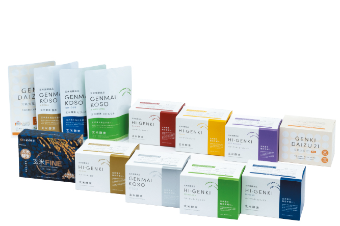 玄米・胚芽・表皮を麹菌で発酵させた「玄米酵素」には、健康維持に欠かせない40種類以上の栄養素が含まれている。主力商品の「ハイ・ゲンキ」シリーズは、今年で発売55年を迎える。数多くの健康食品が生まれては消えていく中、半世紀以上にわたり支持され続けてきた背景には「食改善で真の健康をお届けする」という玄米酵素グループの経営理念がある。
