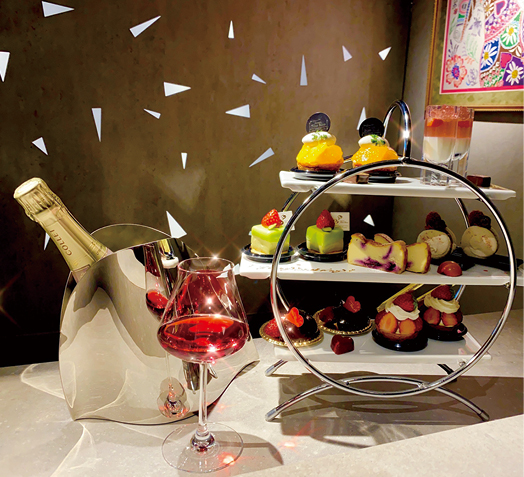 多様なシャンパンを用意。パティスリーBilss Bilssとコラボしたアフタヌーンティースタンドも人気