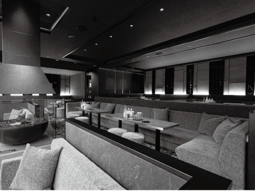 ダークグレーを基調にした大型フロアは唯一無二