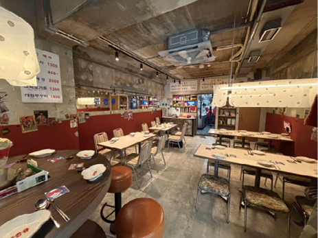 席数は全42席(テーブル6卓、カウンター13席)。店内はコンクリート打ちっぱなしの無骨な空間が特徴で、これは韓国で有名なグルメスポット「ポッサム通り」をイメージしたもの。視覚的にも楽しめる空間に仕上げられている。